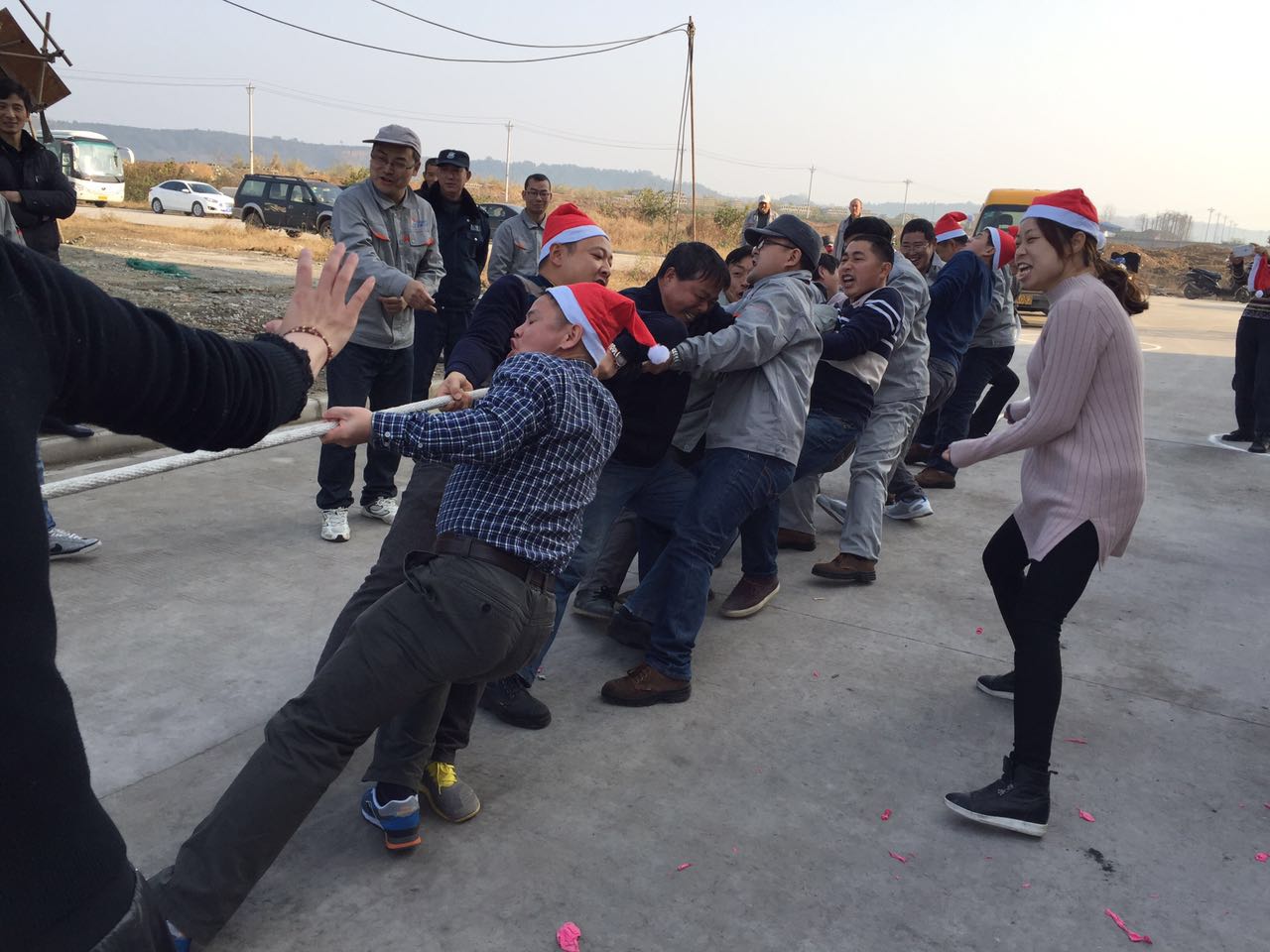 员工在拔河
